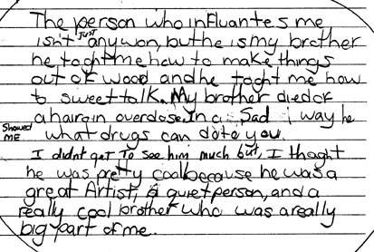 This disorder can be very frustrating and if you do not take control and understand the disorder it can consume your life. And I think that is what Tony was trying to tell me. I think this disorder kept Tony from doing and having what he so badly wanted. To talk to people, look them in the eye, have friends, be accepted, be happy, make good choices, like people, share what he feels inside, to be outgoing and not shy. Let people love him and help him. He wanted all this, but just didn't know how to find it, as he stated in a letter to his Grandpa weeks before he died.